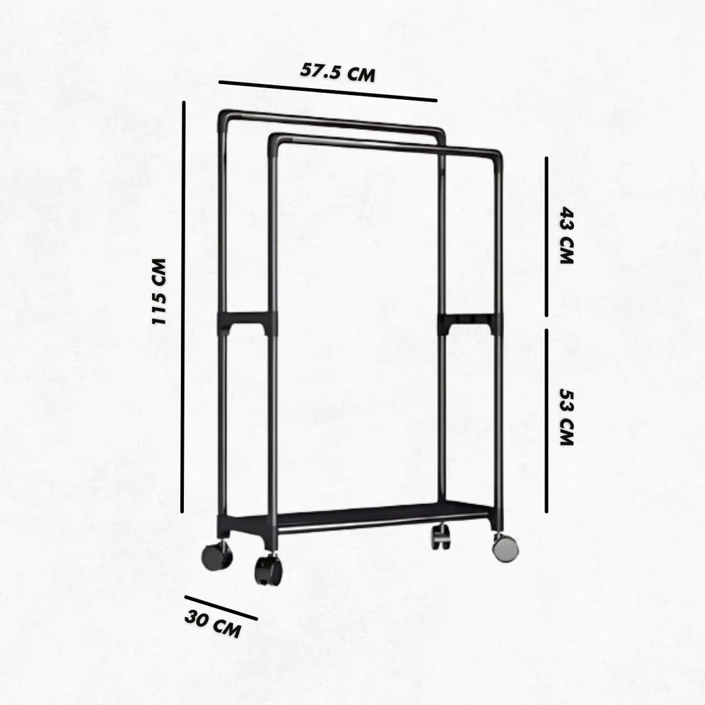 Com a Arara Dupla com Prateleiras Desmontável, você tem a combinação perfeita de praticidade, organização e estilo para otimizar o seu espaço de maneira inteligente e funcional.