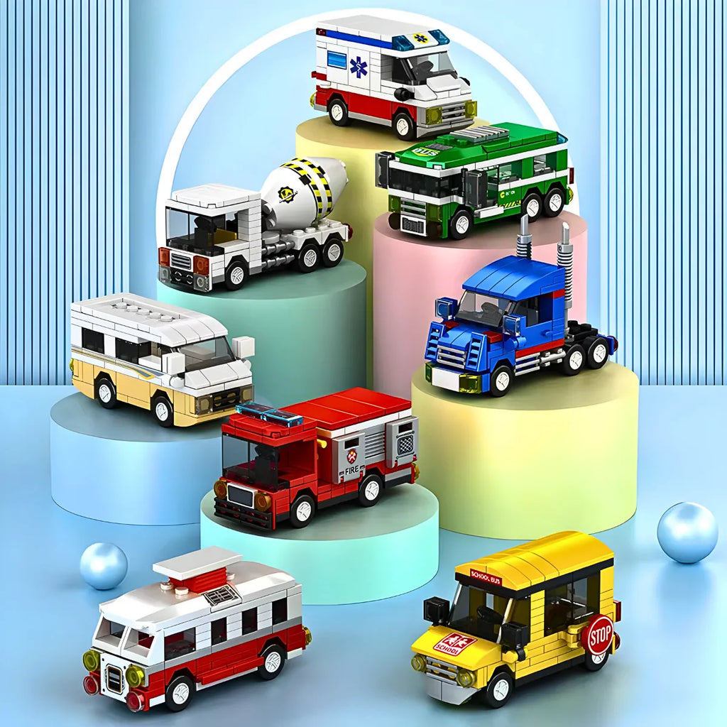 Este brinquedo de blocos de montar é a escolha perfeita para crianças que adoram brincar e aprender ao mesmo tempo. Feito de plástico resistente, ele faz parte de uma linha de carros no estilo LEGO que imitam veículos de profissões essenciais, como ambulância, caminhão de bombeiro e ônibus escolar. O carro de montar é ideal para estimular a imaginação, a coordenação motora e o desenvolvimento cognitivo da criança, proporcionando horas de diversão.