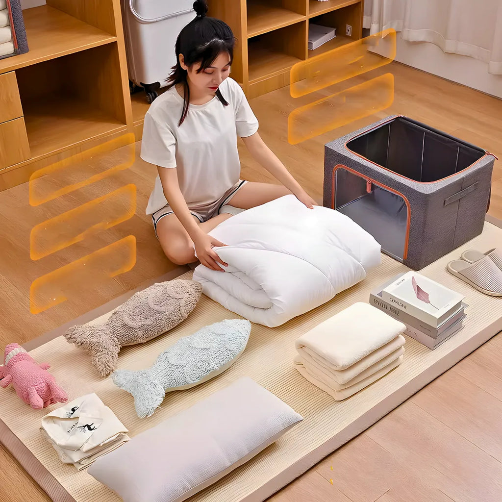 - Versatilidade de Uso: Ideal para guardar roupas de cama, cobertores, edredons, brinquedos, roupas de bebê e outros itens. Pode ser usado em diversos ambientes como quartos, armários, sótãos, porões, e até mesmo em veículos.