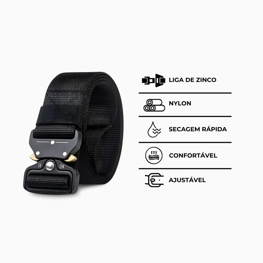O Cinto Tático é a escolha ideal para quem busca resistência, praticidade e estilo. Com design robusto e fivela de metal com engate rápido, ele se adapta perfeitamente a diversas situações, proporcionando conforto e segurança.
