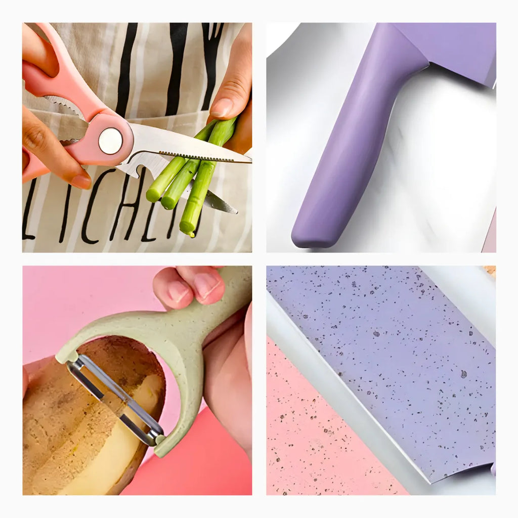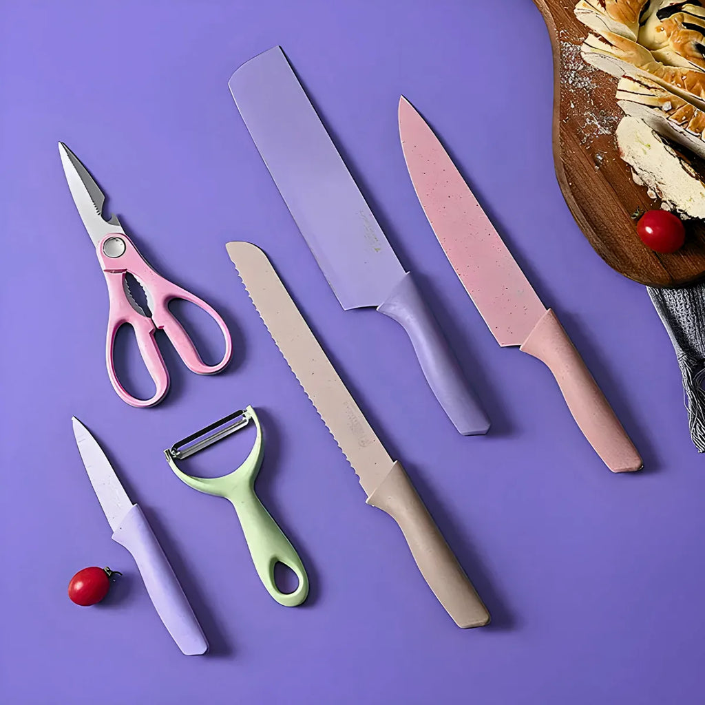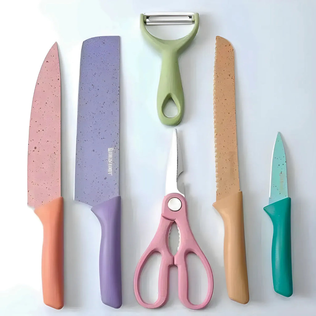 Conjunto de Facas 6 Peças Aço Inoxidável Colorido Multifuncional para Cozinha