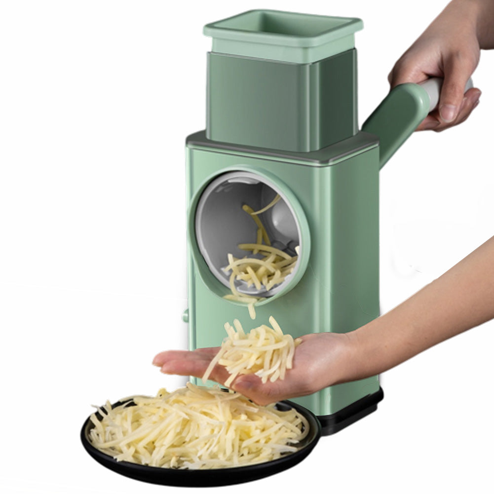 Este utensílio de cozinha vem com 3 lâminas intercambiáveis, que facilitam o corte, a picada e a moagem. É ideal para pepinos, cenouras, batatas, cebolas, queijo, chocolate, alho e até amendoins, amêndoas.
