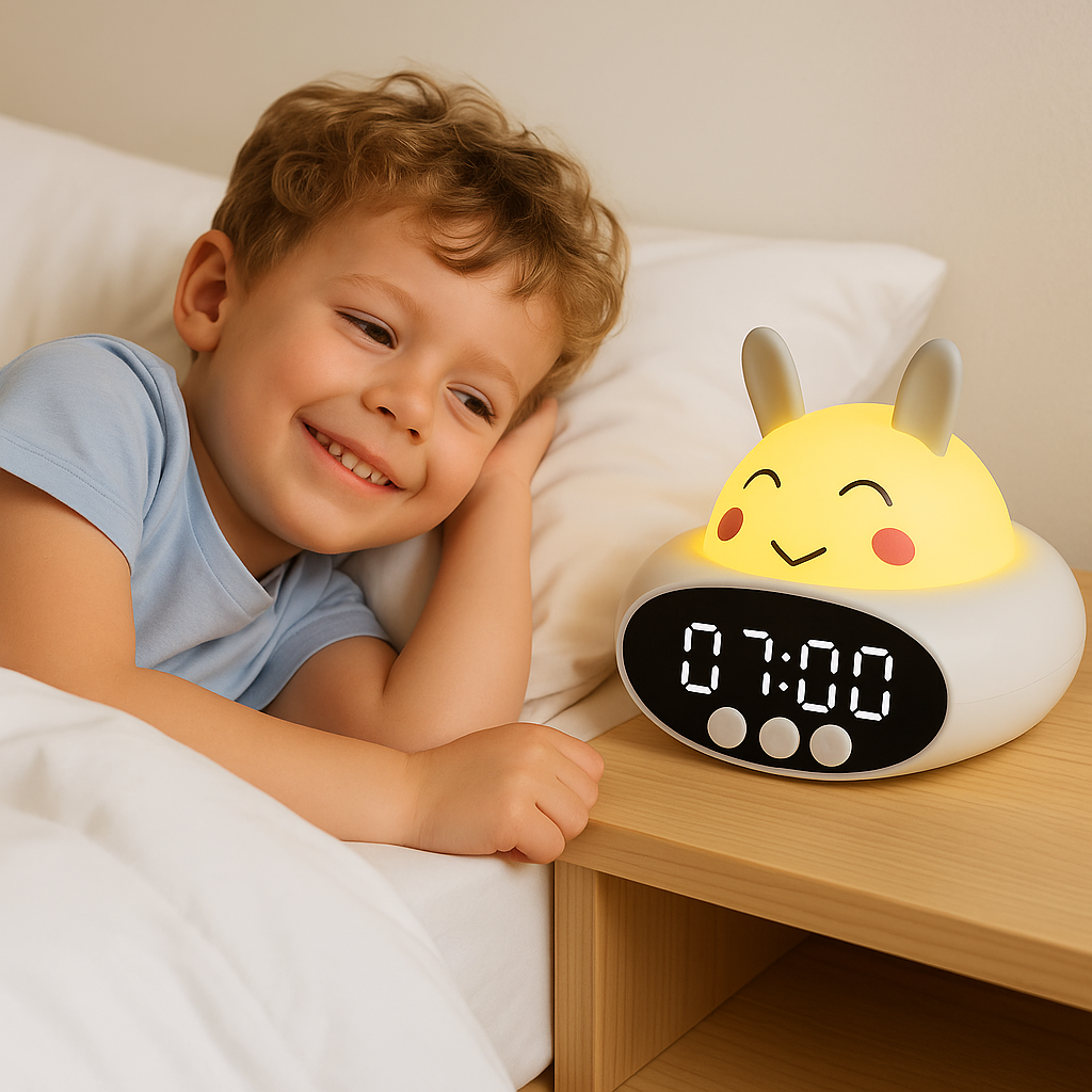 O Despertador Coelho com Luz Noturna combina praticidade e diversão em um design lúdico e encantador. Ideal para o quarto infantil, ele auxilia na rotina das crianças com funções de despertador, luz noturna suave e efeitos de cores vibrantes. Com bateria recarregável e funções inteligentes, torna-se um aliado tanto na hora de acordar quanto na hora de dormir.