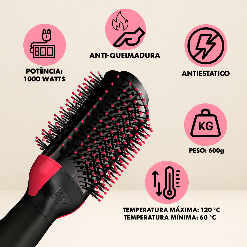A Escova Secadora Profissional foi desenvolvida para proporcionar praticidade e eficiência na hora de cuidar dos cabelos. Com potência de 1000W, revestimento em cerâmica e design ergonômico, ela seca, modela e alisa os fios com facilidade, deixando-os brilhantes e alinhados em poucos minutos.