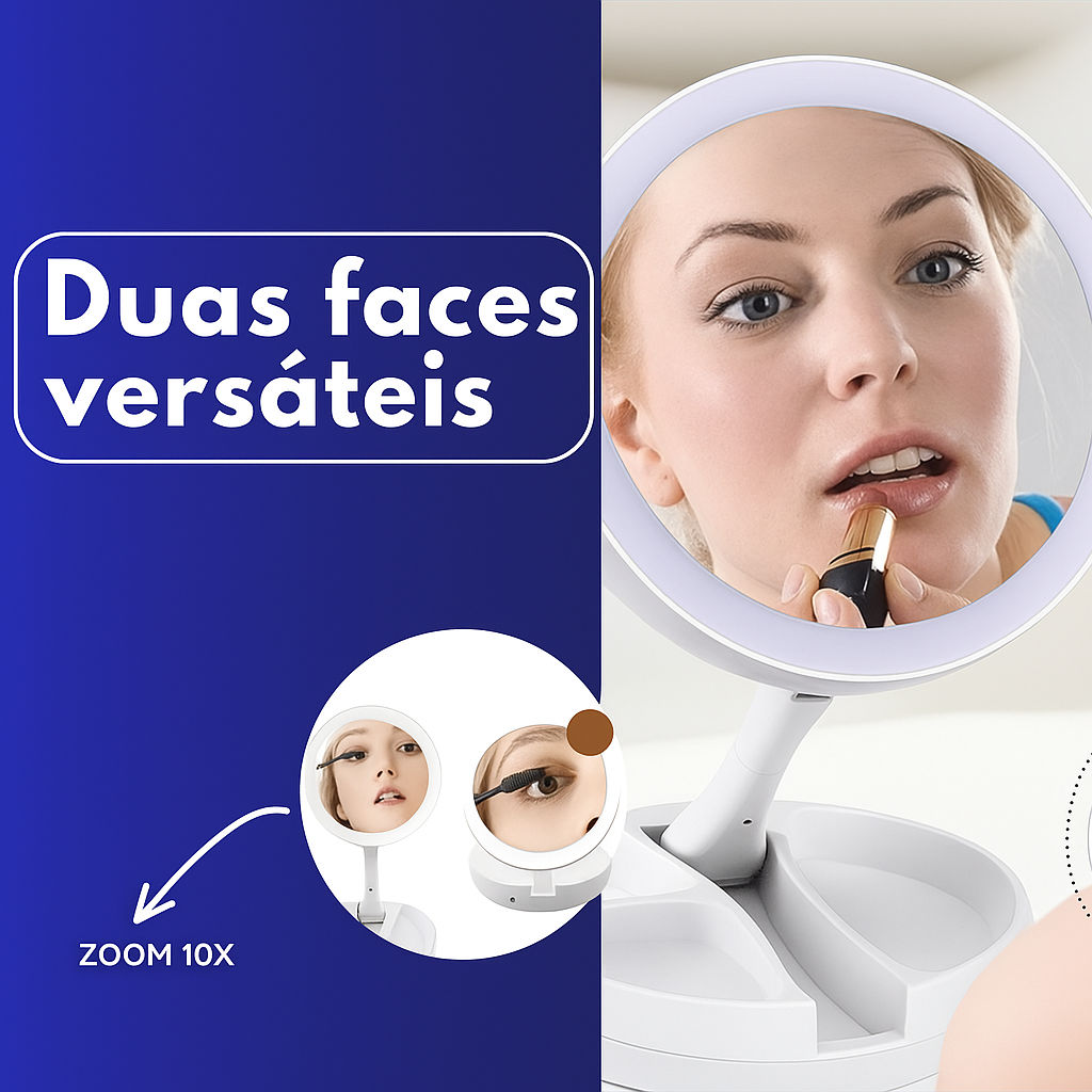 Espelho Led Portátil Zoom 10x Dobrável Perfeito Maquiagem
