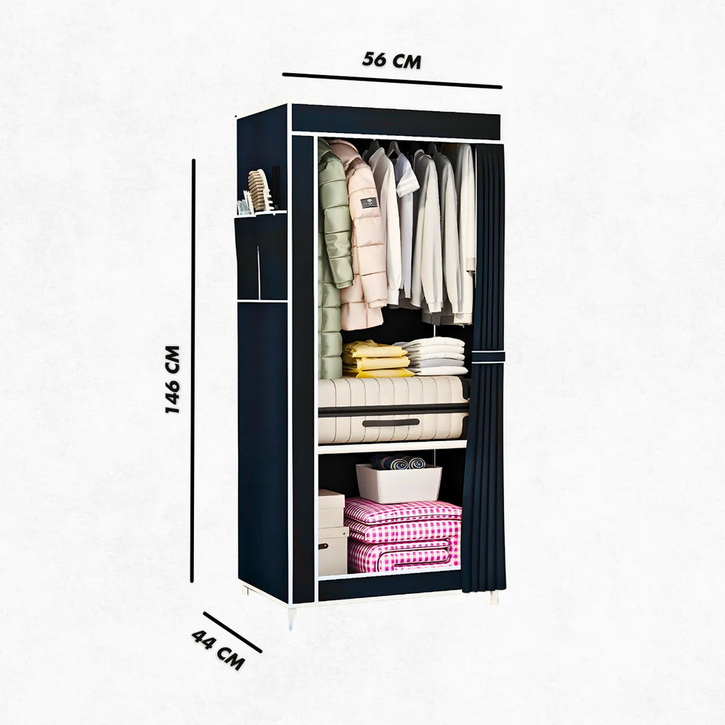 Este armário de tecido dobrável oferece uma solução eficiente para organizar suas roupas e acessórios de maneira prática e funcional. Ideal para quem busca otimizar o espaço, ele conta com um design inteligente, com divisórias amplas e cabides, além de ser fácil de montar e limpar.