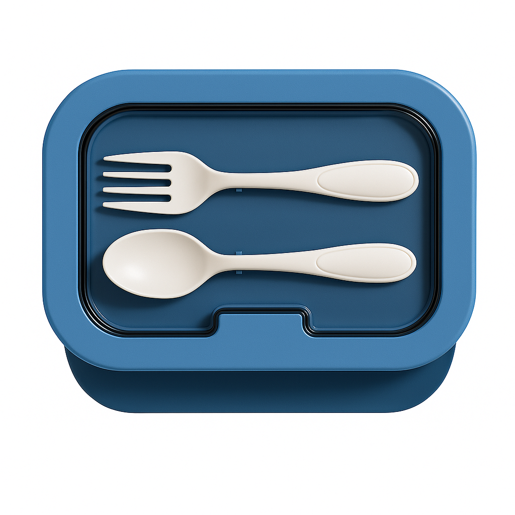 Talheres sempre com você: inclui colher e garfo reutilizáveis encaixados na tampa – organizados e prontos para o uso.