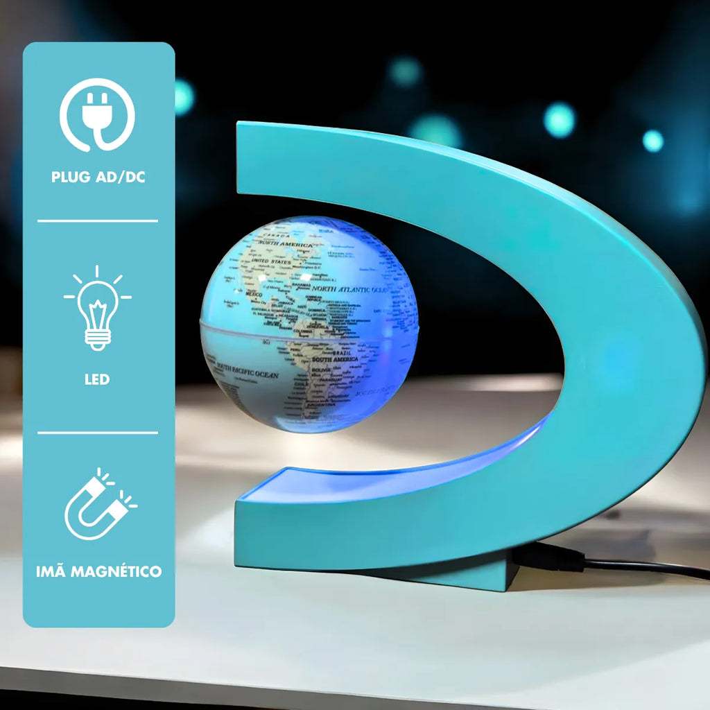 - Tecnologia de Levitação Magnética: O globo flutua no ar graças à tecnologia magnética, proporcionando um efeito visual impressionante. A rotação do globo é de 360 graus e ocorre silenciosamente, sem interrupções até ser desligado ou interrompido por um movimento externo.