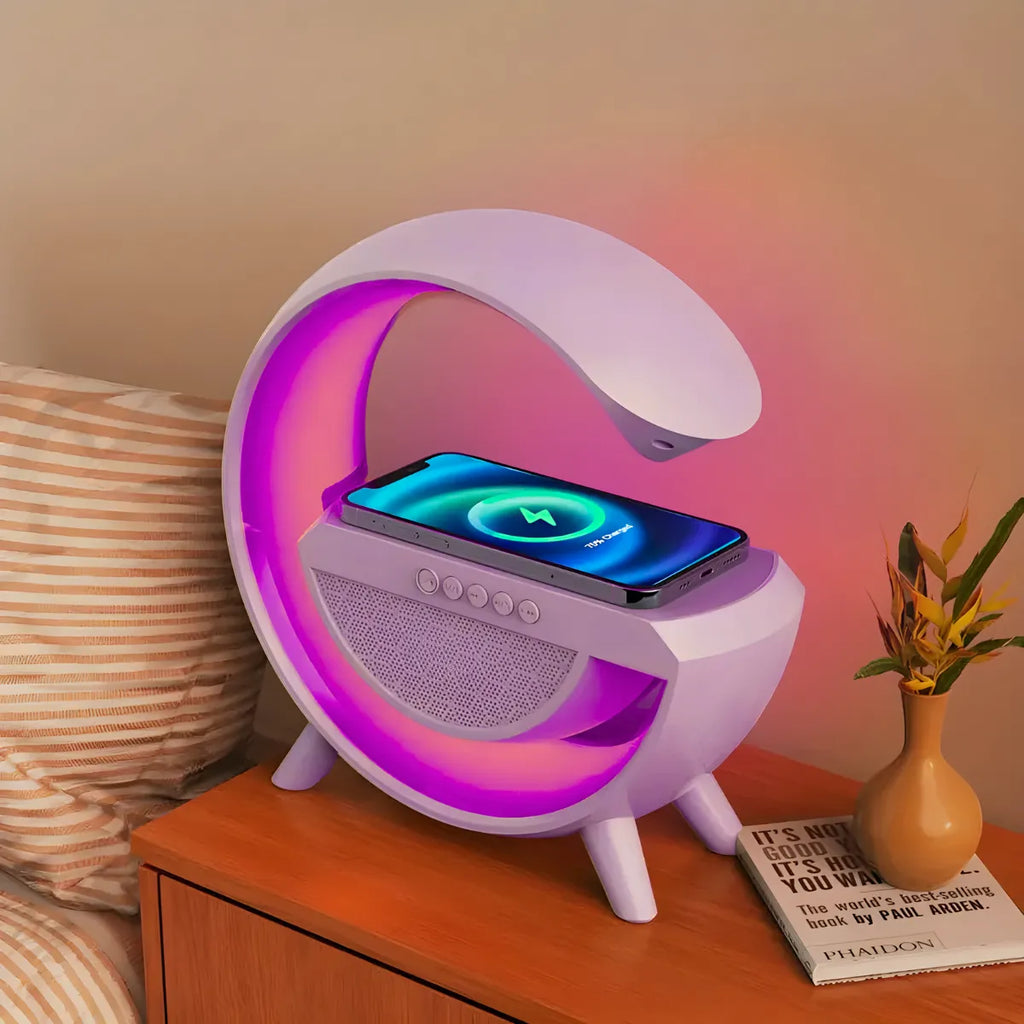 Apresentamos a Luminária G com carregador por indução, uma solução inovadora que combina iluminação, som de alta qualidade e carregamento sem fio em um único produto. Ideal para quem busca funcionalidade e estilo em um único dispositivo.