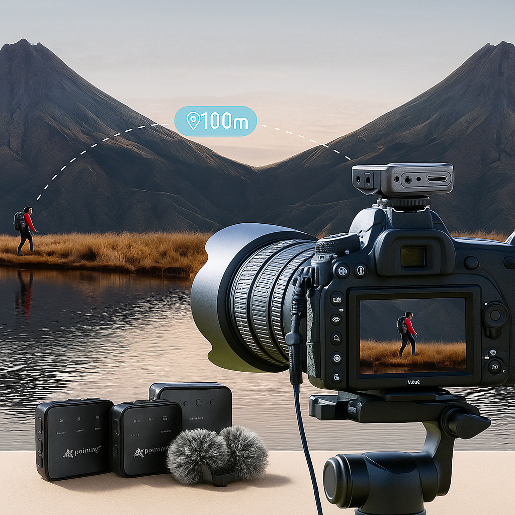 - Alcance Estável: Transmissão estável com alcance de até 100 metros em campo aberto, garantindo áudio limpo, sem distorções e com baixa latência — perfeito para gravações com mobilidade.