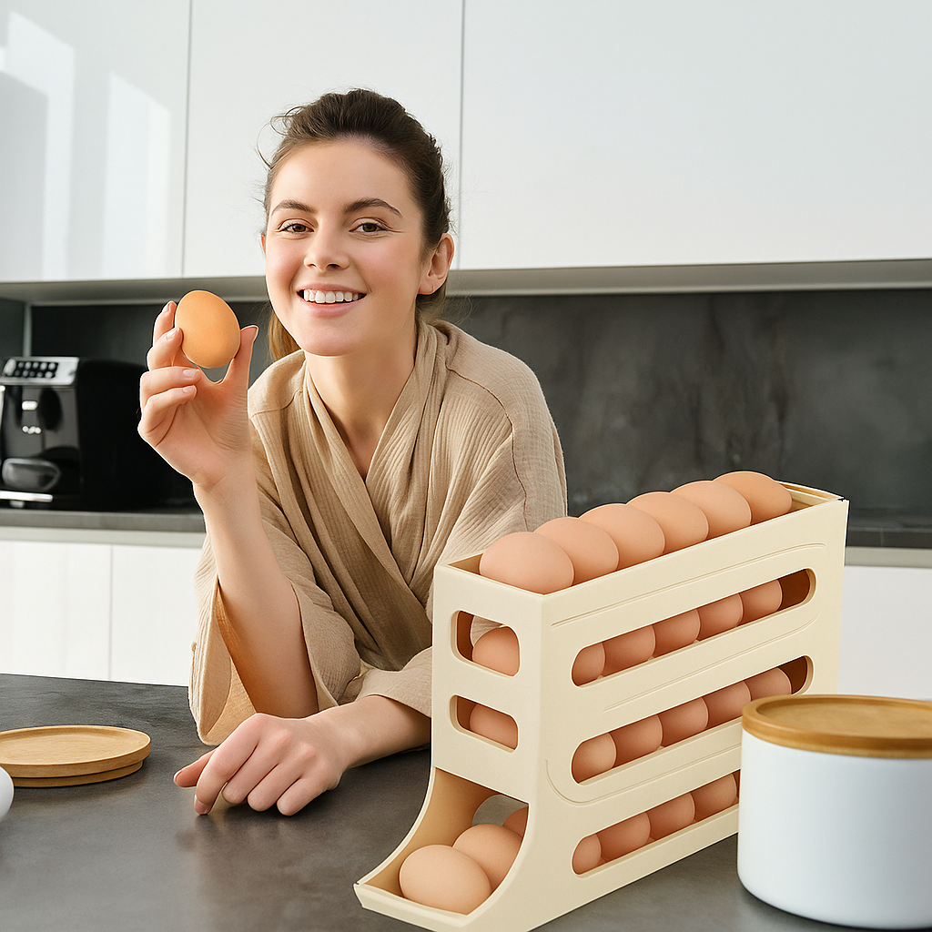 Organizador de Ovos com Suporte Rolante – Praticidade e Organização na Sua Geladeira