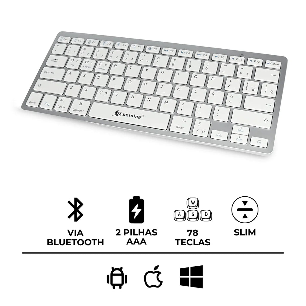 • Alimentado por duas pilhas AAA (não inclusas), o Teclado sem fio Bluetooth Slim mantém você conectado durante todo o dia sem esforço. Com o padrão ABNT (BR Português), sua digitação se torna mais intuitiva e eficiente, elevando sua produtividade a novos patamares onde quer que você vá.