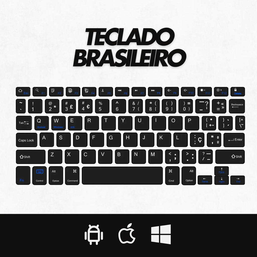 - Teclado ABNT 1: Padrão brasileiro, com teclas especiais como "Ç" e distribuição de acentos compatível com a língua portuguesa.