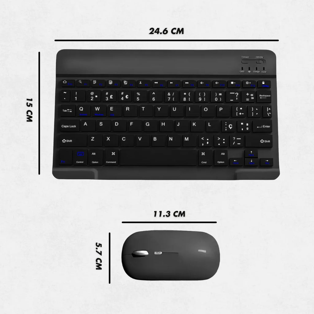 Este kit oferece uma solução prática e eficiente para quem busca mais liberdade no trabalho ou no dia a dia. O teclado segue o padrão ABNT 1, ideal para quem precisa de precisão na digitação em português, com as teclas específicas como o "Ç" e acentuação facilitada. A conexão Bluetooth oferece mais comodidade, eliminando cabos e proporcionando uma experiência mais limpa e organizada.